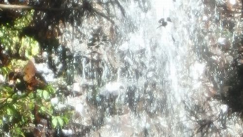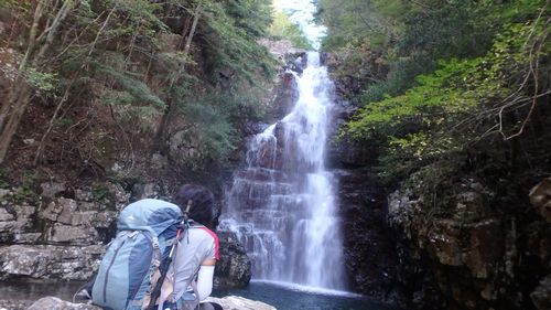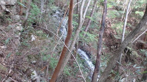 | ▼樹間から望む第3の滝はルートを外れて見れます・・・(汗) 二つ目の滝からルートを見失い読図で直登中に第3の滝を見ました。 |