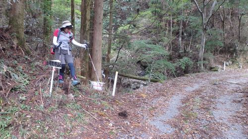 | ▼下山は、旧道を下ることにしました(新道・旧道分岐) | ▼心地良い空間の広がる枯れ沢です♪ | |