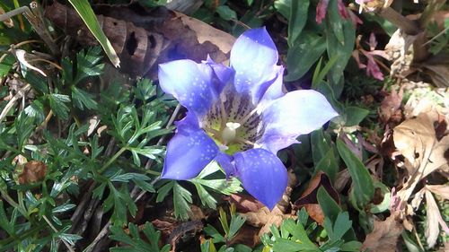 | ▼障子岳に咲く白い花 | ▼障子岳のリンドウ | |