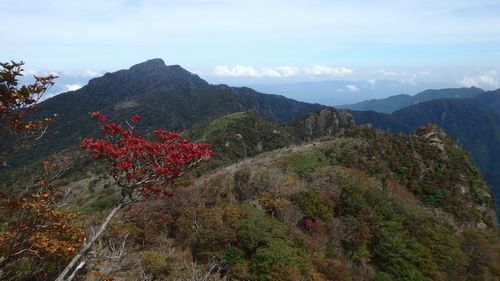 | ▼紅葉が始まっています(縦走路にて) | 烏帽子岩〜祖母山(縦走路の展望所にて)▼ | |
