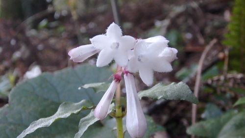 | ▼純白のサツマイナモリが迎えてくれます♪ | ▼ミニ展望所へ上がると眼前に椿山〜双石山が見えます | |