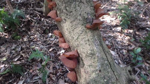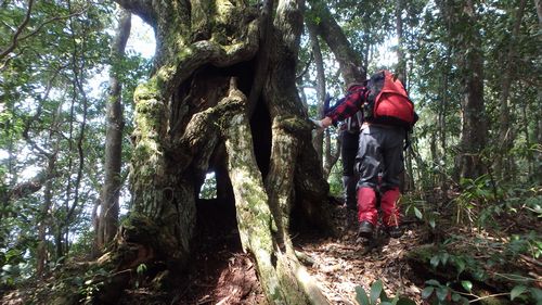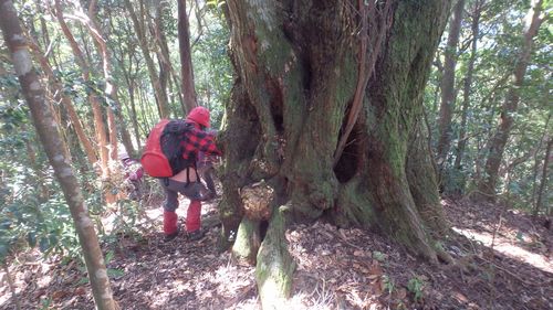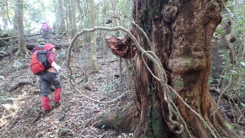 | ▼先ず、岩壷山へ向います | ▼面白い形の巨樹です | |