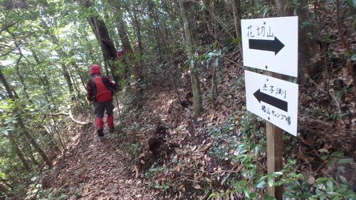 椿山キャンプ場発(7:50)⇒家一郷山(8:35)⇒花切〜岩壷稜線(10:15)⇒岩壷山(11:20-11:55)⇒花切山(13:40)⇒花切展望所(13:50)⇒万葉の滝(15:05)⇒椿山キャンプ場(15:30)