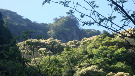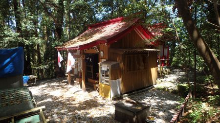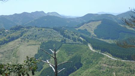| ▼小峰山頂より椿山を望む | ▼小峰を下り姥ケ嶽神社へ到着・・・行者コースへ向います | |