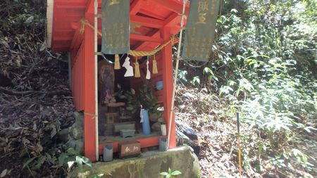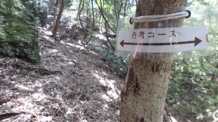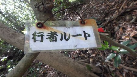 | ▼古い「行者ルート」の標識・・・標識は少ない | ▼細い滝へ寄り道・・・落差、2〜30mはありそうです! 時間は有るので興味を持ったら近くまで行ってみます。 |