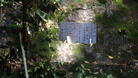 | ▼宮崎大学山岳会員2名、遭難の碑(S46年6月)・・・合掌 | ▼始発のルンゼ登山口へ下山です。 県道を歩かずに双石山から小峰を周回できました |