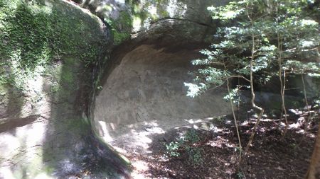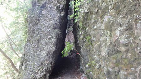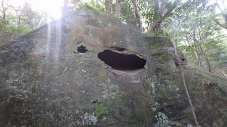 | ▼めがね岩です | ▼弥五郎どんの大岩が乗っかり天狗のトンネルが完成 | |