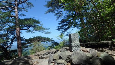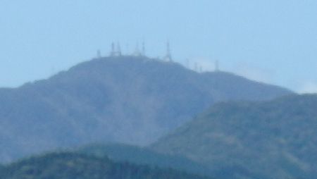 | ▼双石山の三角点(509.3m) | ▼双石山から望む鰐塚山(1181m)は電波塔が占拠 | |