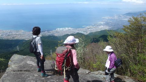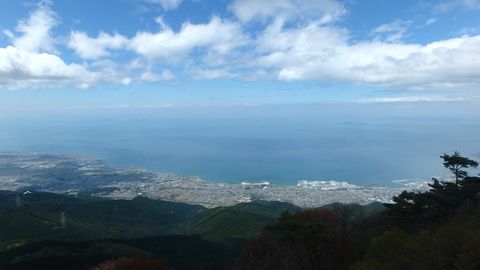 | ▼鋸山の展望岩は四国中央市の街並みが一望です。 | ▼眼下に広がる瀬戸内海の燧灘 | |