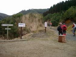 ■ビジターセンタ&花瀬林道終点分岐ヵ所に駐車、林道を500m歩いて登山道西口に到着する。
