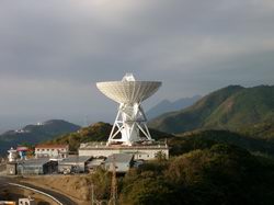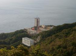 【内之浦宇宙空間観測所】M台地の発射塔と衛星追跡センタの34m径パラボラアンテナ