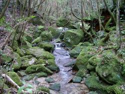 ・西口コースは沢伝いに高度を上げ稜線へ出てから東進、枯木岳〜稲尾神社へ至る。