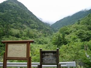 | ===2003年8月19日 (曇り)=== ←仙流荘ヶ所のバスターミナルより北沢峠方面を望む ・無料駐車場や長谷村営バスの車庫があります。 ・また東京新宿からの直行バス便も運行されている。 (※南アルプス林道はゲートが有り一般車は通行禁止) |
