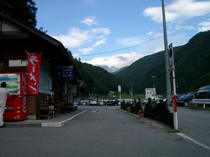| ←アルペンプラザの建物 山梨県の広河原(南アルプス市) ・長谷村営バスで北沢峠まで上がり峠で南アルプス市営バスに乗り換えて広河原へ到着 【バス代:\750】 ※現在南アルプス林道の甲府市方面は崖崩れで通行止め |