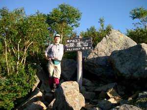 | ===2003年 8月22日 (快晴)=== ←双児山山頂(2649m) ・6時前に到着、北岳や仙丈岳を眺めながら朝食をとる(^O^) |