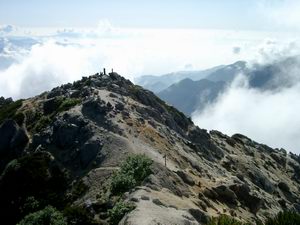 | ←摩利支天鞍部から見上げる甲斐駒ヶ岳山頂&鞍部の岩峰 ・足下に注意、スパッと切れ落ちた岩峰に圧倒される(*^_^*) |