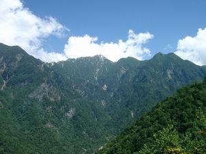 | ←長谷村営バスの車中から望む鋸岳 (下山後の南アルプス林道より) |