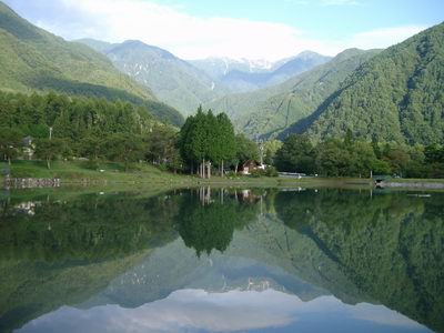 ■駒ヶ池に写る逆さ宝剣岳(中央奥の尖峰)