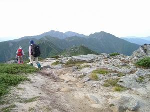 ■島田娘(2858m)付近から望む空木岳への縦走路(中央最奥は南駒ヶ岳)
