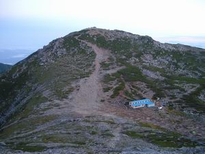 ⇒青い建物は頂上山荘(一泊2食:¥8,000+弁当¥1,000)