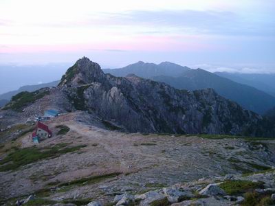 ⇒空木岳山頂から5分程度下ると展望雄大な山小屋に到着する(一泊三食:¥5,700)