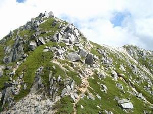 ■空木岳第二ピークへは右方を巻いて上がる
