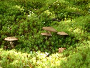 ⇒光線の反射具合で光って見える苔です ⇒きのこは《ショウゲンジ》